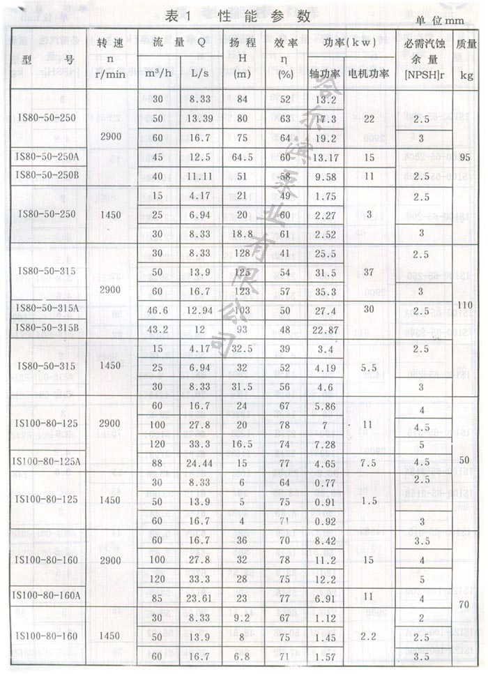 IS型泵系單級單吸(軸向吸入)離心泵,適用于工業(yè)和城市給水、排水,亦可用于農業(yè)排灌。供輸送清水和物理化學(xué)性質(zhì)類(lèi)似清水的其它液體之用,溫度不高于80%。